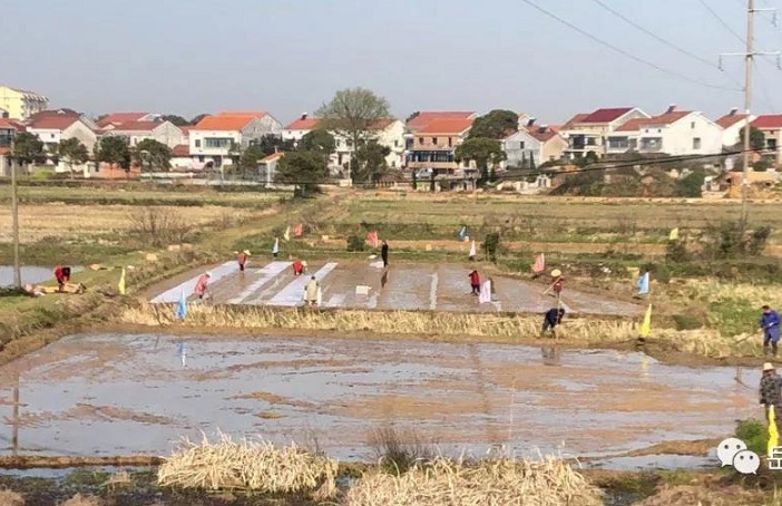 目前,全镇秧苗准备就绪,部分稻田已经插秧 。