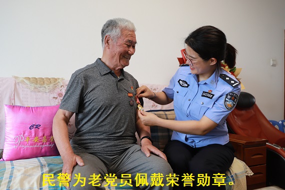 活动中,包头铁路公安处民警携带节日慰问品前往老党员周太付的家中进行慰问,与老人亲切交谈,并详细询问老人身体状况和生活情况,为老党员送去了组织的关怀与温暖。在慰问过程中,周太付老人情不自禁的讲起了抗美援朝战争时期的革命故事,以自己亲身经历给在场民警讲授了一堂别开生面的党史教育课。一幕幕难忘的革命历程,深深地触动着现场的每一名民警。随后,民警通过观摩老物件、老照片和荣誉奖章,直观地了解到他入党以来的军旅生涯和革命岁月,从中深深感受到了革命前辈的奉献精神和现在美好幸福生活的来之不易。