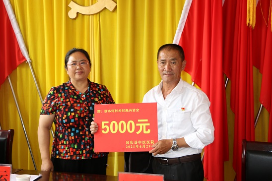 义诊活动过后,中共清水河村党支部庆祝建党100周年党员大会在村委会召开,会议同时邀请中共凤山镇党委委员、政法委员杨国才同志莅临指导,院长梅晓云同志、驻村工作队长杨汝华同志、清水河村全体党员,60余人参会。会上,院长梅晓云同志代表医院赠予清水河村乡村振兴资金5000元。给全体党员带来一堂题为《党建引领乡村振兴》的主题党课,通过要坚持党建引领,使基层组织“强”起来;要坚持党员带头,引领群众“动”起来;要以乡风文明为重点,促进乡风“美”起来;要以人才为支撑,让基层队伍“壮”起来;要以产业融合为目标,推动乡村经济“活”起来五个方面阐述如何将党建引领贯穿于乡村振兴的全过程,推动乡村走向振兴。