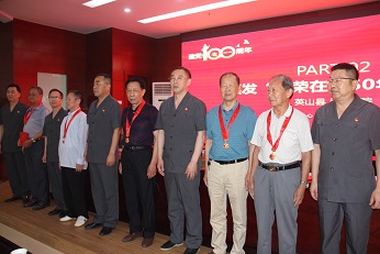 法院退休干警李明朗在法院领导手中接过“光荣在党五十年纪念章”后即兴感言:“志愿入党立誓言,决心跟党永向前,忠诚于党献肝胆,光荣在党五十年。”