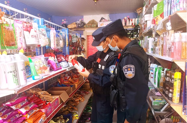 期间,民警仔细查看店内出售的食品货物,详细询问了进货渠道、卫生状况、生产厂家、保质期限,是否存在“三无”、过期、变质食品等情况。随后,民警叮嘱店主,一定要守法经营,不要销售来历不明或不符合食品卫生安全以及过期的货物,以免触犯法律害人害己。