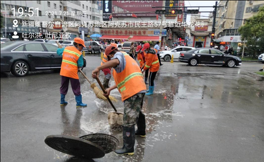 清风网讯(阿克苏市执法局 苗建华、赵娜)连日来,阿克苏市区一场又一场暴雨接踵而至,导致市区不少路段出现大量积水,给市民出行造成不便,无形中加大了环卫工人的工作量。然而,为了尽快恢复干净、整洁的城市面貌,在暴雨过后,有这样一群身穿橘黄色工作服的环卫工人一如既往、早出晚归,奋力劳作,宛如一盏盏闪亮的“橘色彩虹”点缀着城市的大街小巷,精心打理着城市的每一个角落。