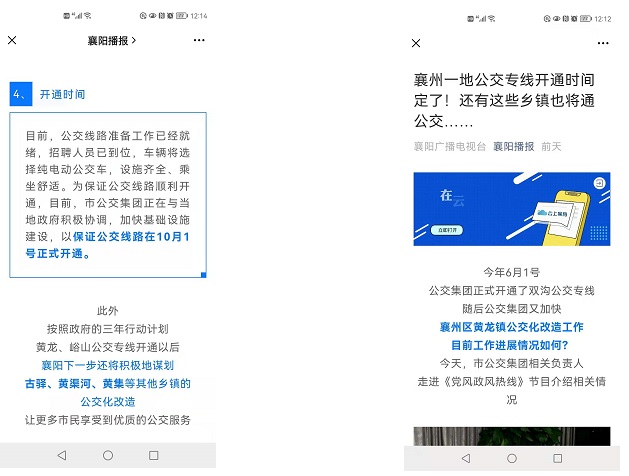 近几年,随着对335省道提档升级和沿途公共设施条件完善,市区到黄龙已具备通公交条件。襄阳市人大代表、该镇党委书记张君华、镇委副书记、镇长刘帆、区人大代表、镇人大主席樊淑功等代表和领导高度重视群众呼声,积极主动向区、市领导反映黄龙通公交一事,引起市、区领导关注。7月26日,市委常委、市纪委书记、市监委主任吕义斌和襄州区纪委书记、监委主任陈红等领导专程到峪山镇、黄龙镇就城乡公交一体化改革工作进行调研,现场对公共交通一体化改造过程中遇到的难点问题提出要求,区、镇要结合实际情况,制定切实可行的解决方案,确保这项惠民公共事业行稳致远。目前,通过市、区领导的关注和支持,市公交集团定于10月1日正式开通襄州火车站至黄龙的公交,届时,黄龙群众盼望已久通公交的夙愿将得以实现。黄龙社区居民朱伟笑着对笔者说:“看到黄龙即将通公交的消息,真是让人太高兴了,这应该为咱们镇的人大代表和领导记一功,帮助群众完成了多年的愿望,为他们的努力和付出点赞。”