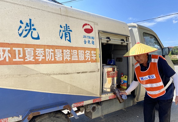 英山县环卫局酷暑送清凉 2021年08月04日 来源 : 清风网 作者: 周满荣 一审:周满荣 二审:宁基 三审:周秋连 清风网讯(通讯员:顾涛、 韩丹)近日,气温持续升高,为防止环卫工人出现中暑等状况,县环卫局适时调整环卫作业时间段,晌午温度较高时辅以机械化清扫保洁,合理安排环卫工人错班休息。同时,该局积极购置白糖、矿泉水、藿香正气液等防暑降温物品发放给一线环卫工人。每天安排2台环卫夏季防暑降温服务车为全城一线环卫工人提供防暑降温凉茶,切实让环卫工人感受到实实在在的关爱。