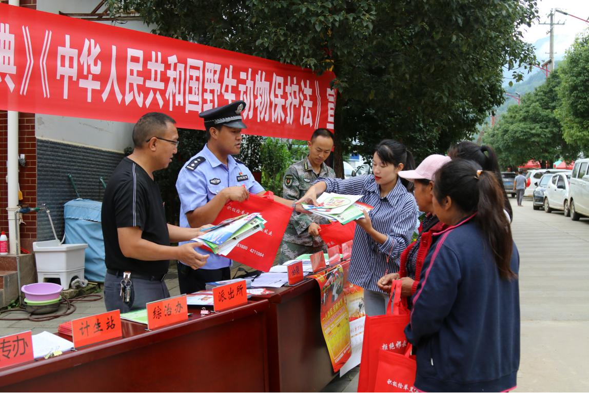 清风网讯(郭大寨乡:辉国兰)为进一步强化法治宣传教育,增强《民法典》和《野生动物保护法》宣传力度,近日,郭大寨乡人大主席团利用郭大寨乡街天人员较为集中的优势,到街上进行民法典、野生动物保护法的宣传工作,通过发放宣传资料、现场解答的方式,让群众更直观的理解,面对面的普法、举实例、群众更能对照身边的案例提高自己的法律意识。