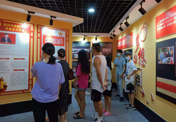 活动现场,志愿者们引导家长、学生参观码头镇东街社区党史展览馆,向他们介绍了中国共产党百年波澜壮阔的历史,共同学习革命先烈们为了理想百折不挠、为了祖国无私奉献、为了后人艰苦奋斗的大无畏精神。