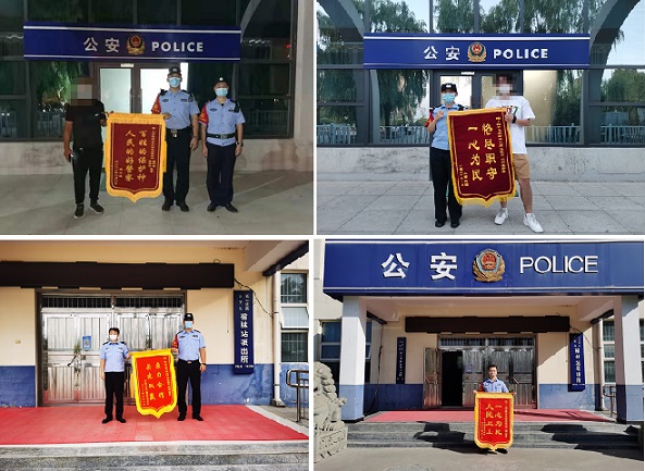 2021年8月4日8时50分许,榆林站派出所收到旅客薛某送来写有“尽心尽职 为民解忧”的锦旗一面。为榆林站派出所执勤民警帮助其找回拿错的行李箱一事表示感谢。同日,9时10分许,榆林站派出所收到旅客邢某通过快递寄来的写有“一心为民 人民卫士”的锦旗一面。为榆林站派出所执勤民警帮助其误入传销组织的儿子安全回到他们身边一事表示感谢。